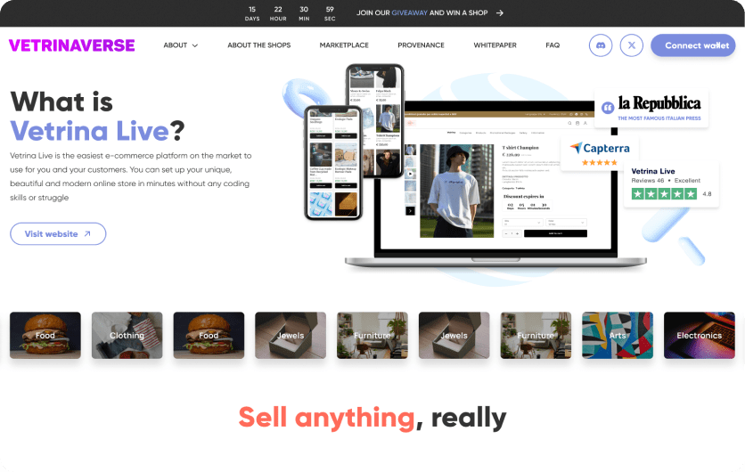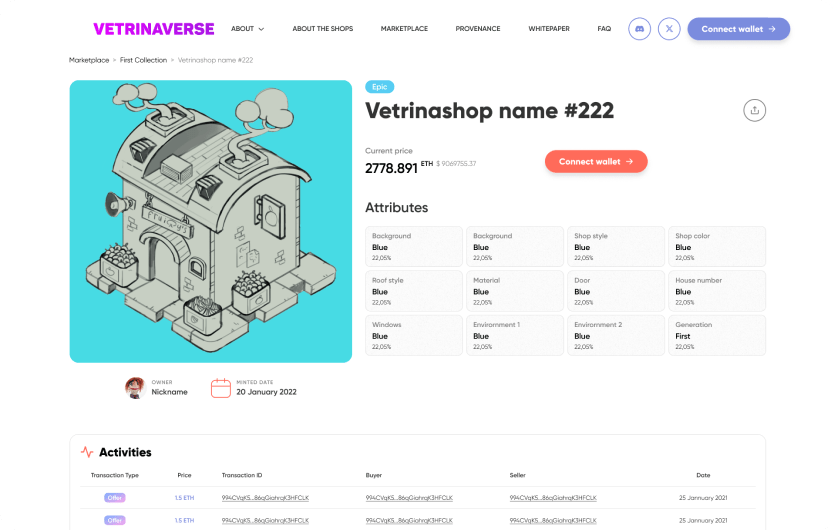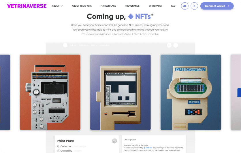 يحصل المستخدمون أيضًا على اشتراك مدى الحياة (LTD) على VetrinaLive، وهي منصة موجودة. ستطلق Vetrinaverse عملتها المعدنية عند اكتمال المزادات النهائية.
