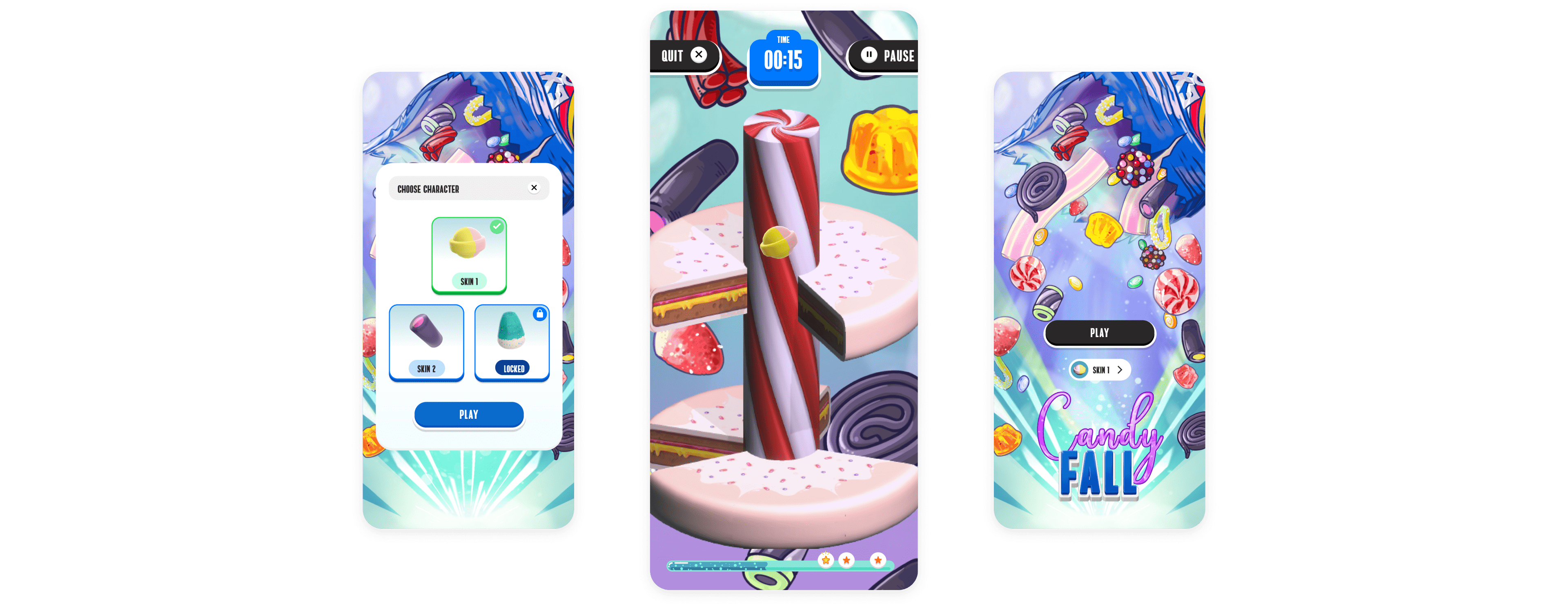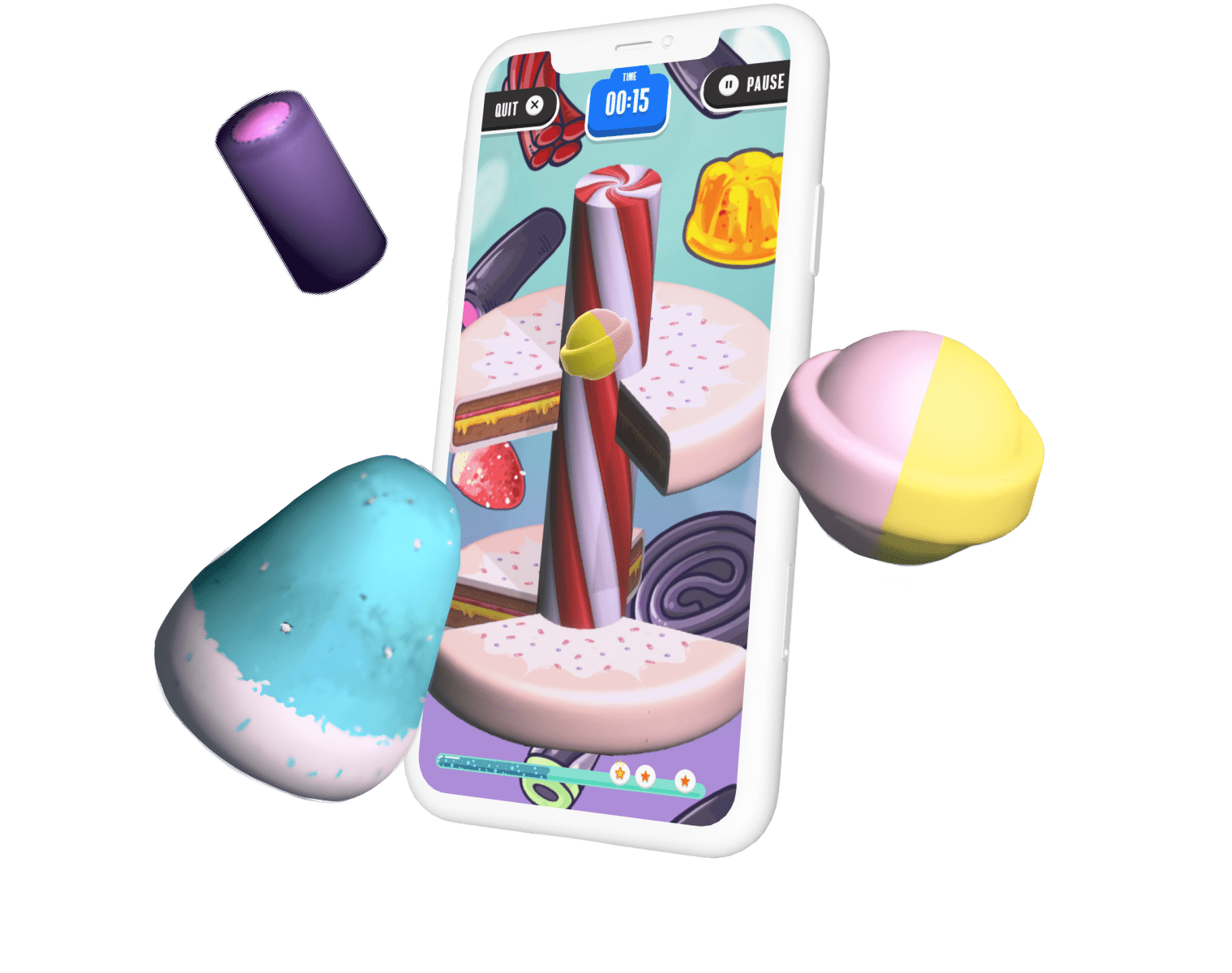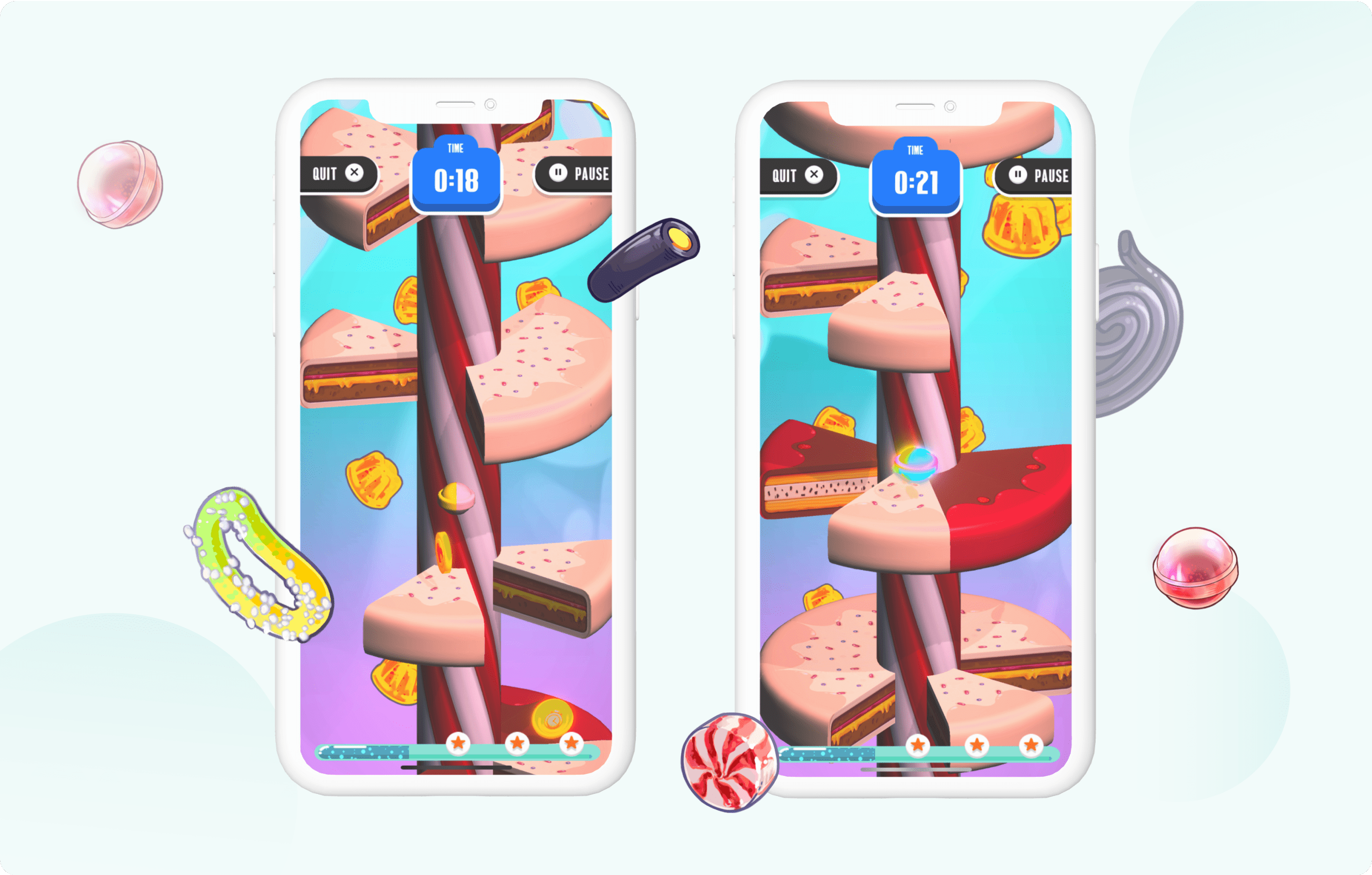 在 Candy Fall 中,玩家将进入一个令人愉悦的世界。他们必须引导一块糖果穿过蛋糕平台的缝隙。玩家需要避开变质的蛋糕、收集能量和抓取硬币。我们可以根据品牌和用户群定制游戏。