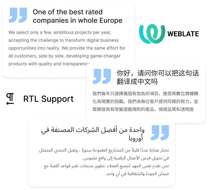要在全球范围内引起用户的共鸣,语言本地化是关键。我们的团队不仅负责翻译,还确保您的网络应用程序符合当地的文化和语境。该本地化流程涵盖您的网络应用程序的各个方面,从界面文本到多媒体内容。